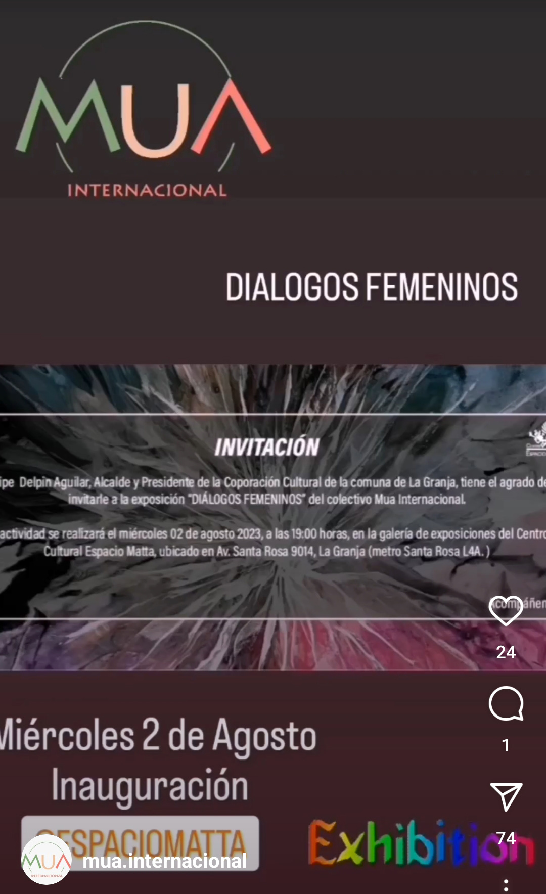 Noviembre / Diciembre 2024 Exposición: DES-AMOR, MORFOLOGÍAS SOBRE HISTORIAS OCULTAS Museo Palacio Rioja, Viña del Mar, Chile VER INSTAGRAM |