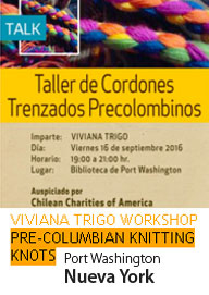 Septiembre 2016 Taller de Cordones Trenzados Precolombinos Biblioteca de Port Washington, Nueva York, actividad auspiciada por Chilean Charities of America y el apoyo del Consulado de Chile en Nueva York (Ver +) Prof. Viviana Trigo |